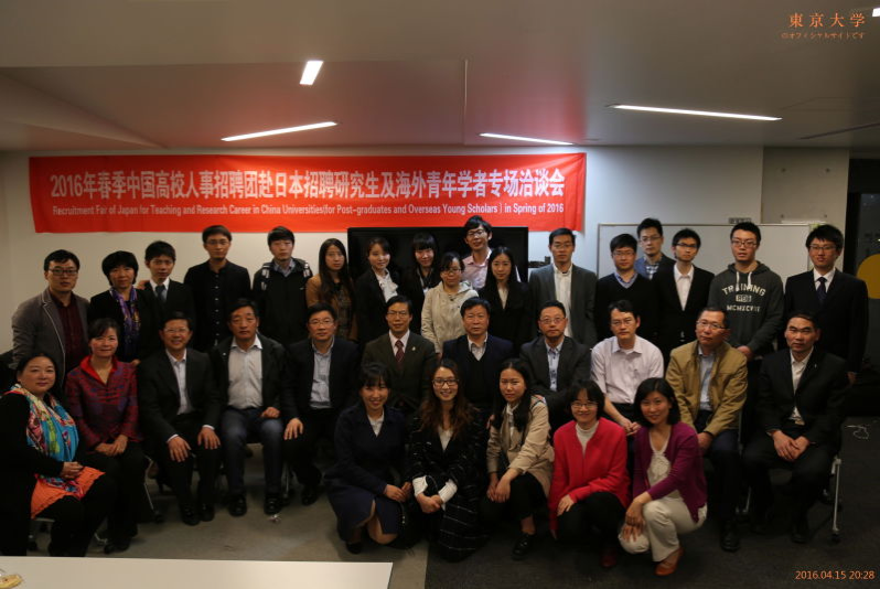 樱花犹存,杨柳吐新,4月14至15日,为落实国家青年千人计划暨国际青年学者引进项目,中国高校人事招聘团在中国留日同学总会的协助下,在东京举行招聘研究生与海外青年学者专场洽谈会,分别在东京工业大学、早稻田大学及东京大学会场与留日学人进行洽谈。
