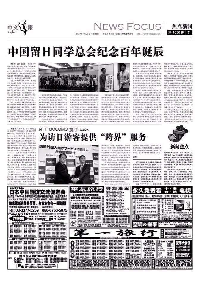 中文导报 纸面报道 中国留日同学总会 百年纪念